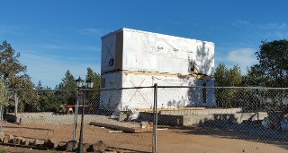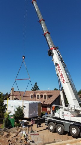 It's been four weeks since breaking ground and six weeks since the core orders were placed. Today's the big day: The cores are delivered and placed on the foundation by crane. |