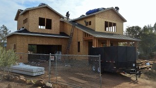 We have a roof. Now we need to put up the house wrap and install the doors and windows. |